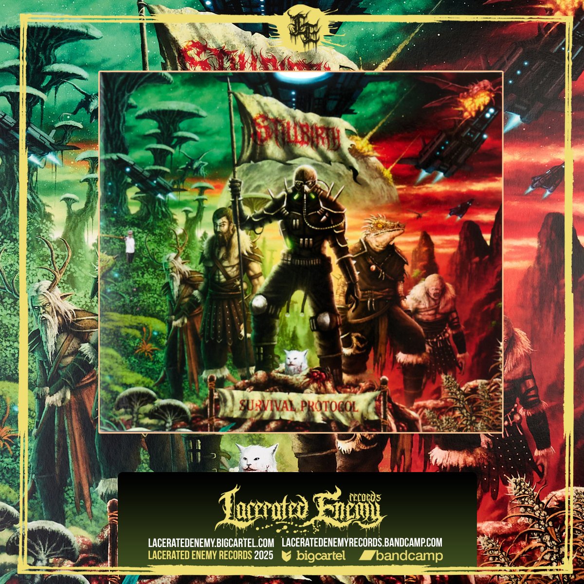 The Survival Protocol contains nine songs with a total of around 35 minutes of pure brutality. It is an uncompromising Stillbirth album – brutal, fast and full of raw energy, but this time with even more dynamism and genre-spanning madness. Each track has its own identity and tells a different chapter of the story – from the moment of calm before the explosion, through the complete detonation, to the destroyed reverberation when nothing is left standing.